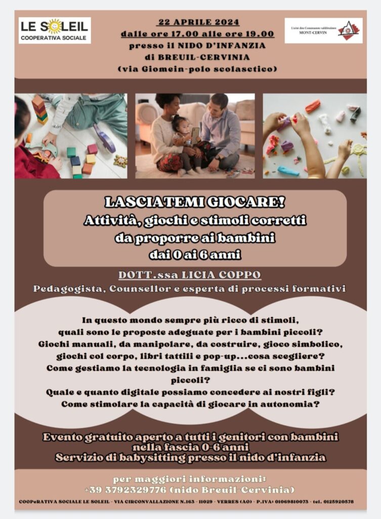 L’evento è aperto ai genitori con bambini nella fascia d’età 0-6 anni.